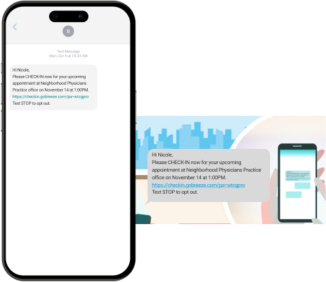 Say goodbye to missed appointments with Breeze Check-In’s automated reminders. Reach patients where they are. Connect with patients via text or email with customizable, engaging messages that boost attendance.